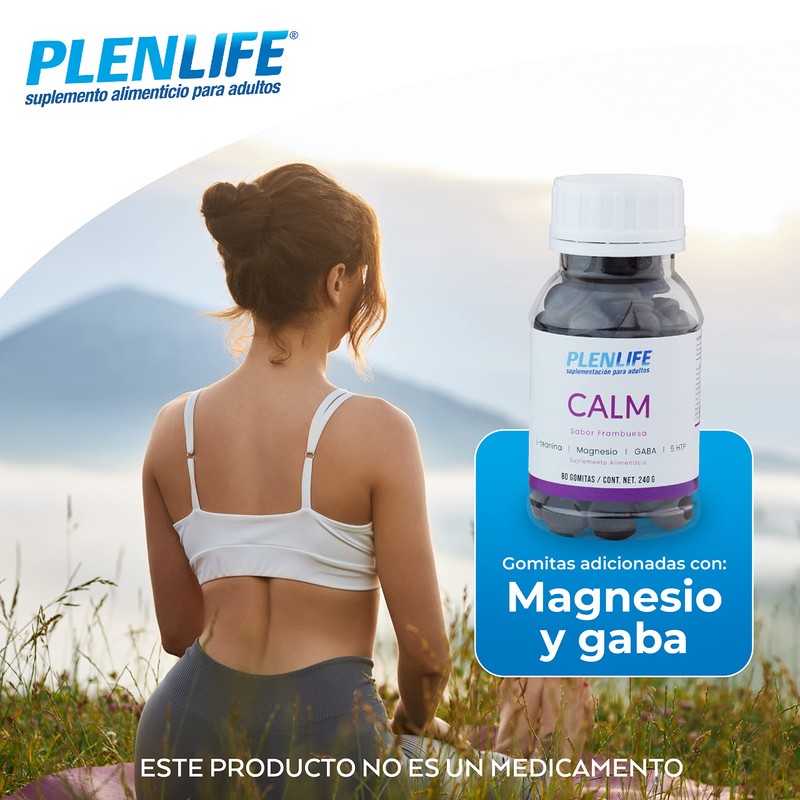 PLENLIFE - Gomitas CALM con Magnesio y L-Teanina - Suplemento sin Azúcar Sabor Frambuesa - Frasco con 80 Gomitas / 240 Gramos
