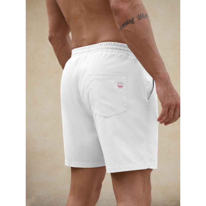 PLEPAN Mens 5 Inch Linen Shorts - Casual Elastic Waist Drawstring Summer Beach Shorts with Pocket White X-Large