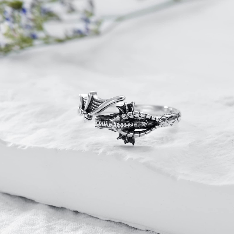 Plesitep Dragon Ring Sterling Silver Adjustable Ring Jewelry for Women Men (7)