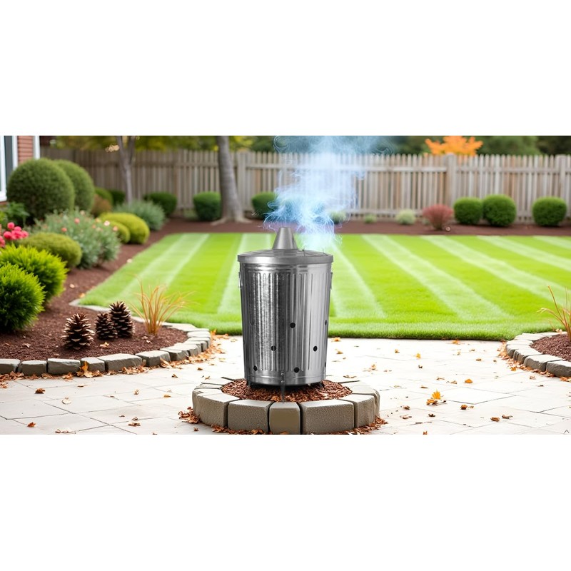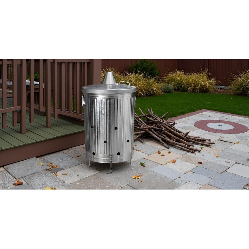 • Heavy-Duty Galvanized Steel – Crafted from rust-resistant galvanized metal, this 20-gallon outdoor burn bin with chimney lid is durable, weatherproof, and built for long-lasting waste disposal and composting