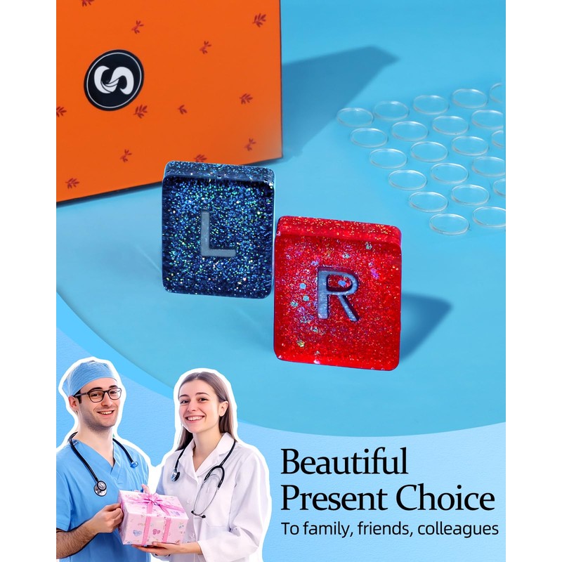Plifal Xray Markers with Lead Initials - X-ray Markers Blue & Red in Resin Radiology Include Reusable Adhesive Tapes to Nurse Radiologist Badge Reel Buddy, Easy to Identify
