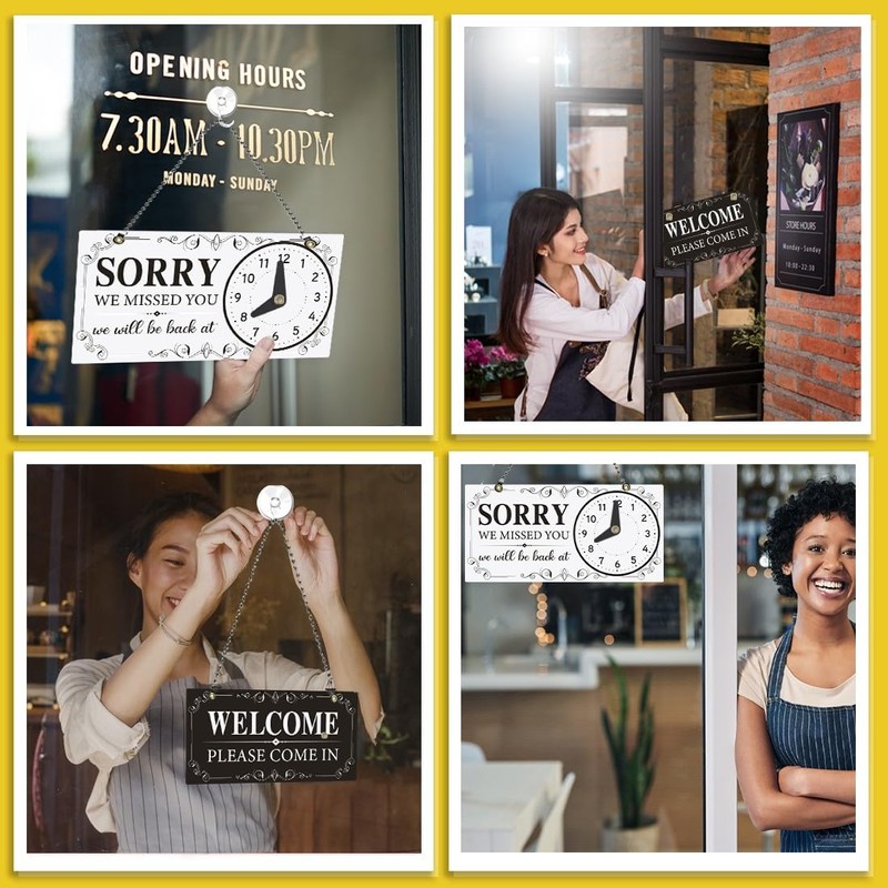 - Business Hours Signage:This business hours sign with clock design keeps information clear and concise so customers can quickly understand