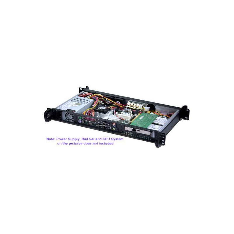 The era of Mini-ITX constructed Dual-core and Quad-Core CPU platform has been the mainstream nowadays, the fast and stable server system is also presented by this model of design, the major feature of this brand new design is the depth of this chassis has 9.84" only, it supports the most cost effective and stable quality, combines with three 40 x 20mm high speed intake fans (1 for optional) for CPU cooling, comes with totally 2 drive bay with the chassis configuration, fits all standard Mini-ITX 6.7" x6. 7" motherboard form factor and standard 1U Flex-ATX power supply, meets regular server system application. Totally 2 drive bay: 2 x 2.5" HDD bay (or 1 x 3.5" HDD) * note: if 3.5" HDD installed, the expansion card function is not available Drive bay equipped with anti-vibration function Two USB 2.0 ports at front bezel Aluminum extrusion front bezel with invisible intake air vent holes I/O front-access mounting assembly included as standard Two 40mm x 20mm high speed YATE LOON D40SM-12C intake fans behind the front bezel Optional 1 x 40mm fan ($2 more; but not recommend, it will shock the HDD) All in one fan wire PCB to keep fast system maintenance Support 6.7"x6.7" standard Mini ITX MB (170mm x 170mm) Front 1/ Front 2/ Rear Mount on the Rack / Cabinet Support standard 1U Flex-ATX 150W~500W PSU (max. psu depth: 150mm) (Not Included) Support 1 slot full high expansion card (max. 185mm long with 3rd Optional 4cm Fan; 220mm long without 3rd optional 4cm Fan); PCI / PCI-E; S/H $20