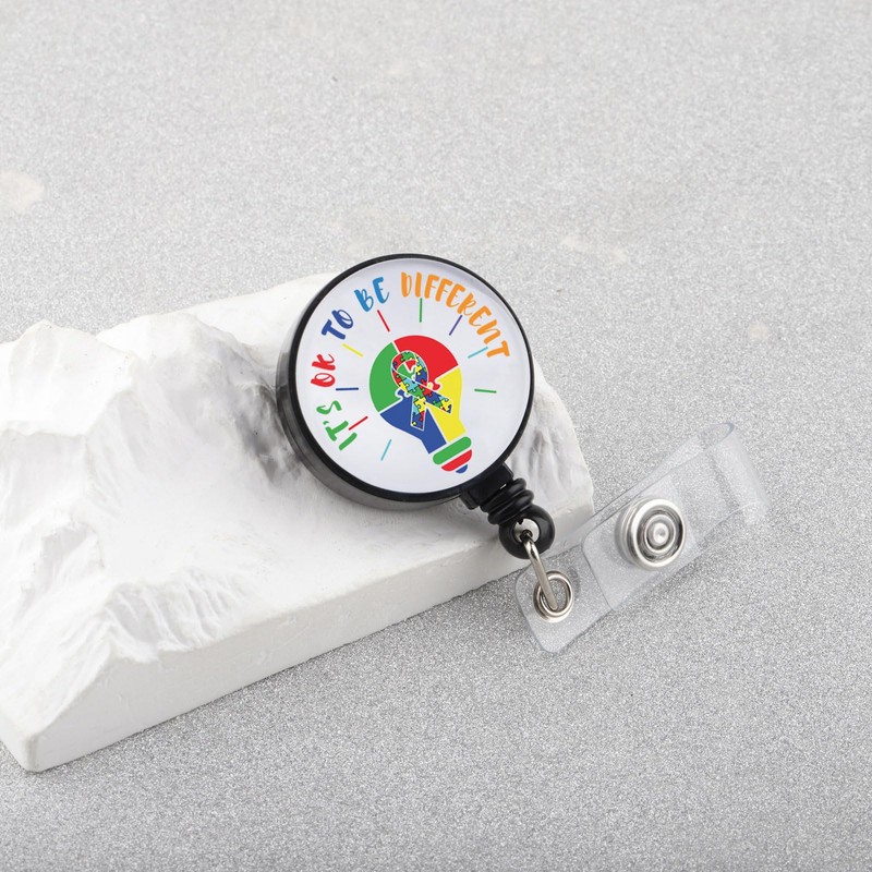 PLITI Autism Awareness Gift Asperger Syndrome Gifts It's Ok to Be Different Autism Ribbon Badge Reel for Nurse Doctor (be Different badgeCA)