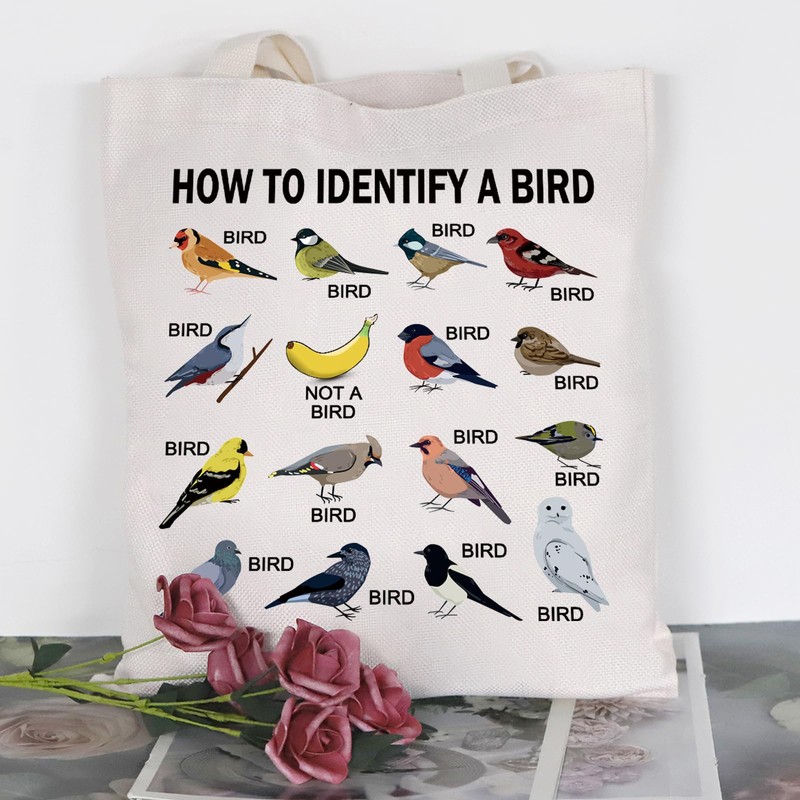 PLITI Bird Tote Bag Bird Lover Gift How To Identify A Bird Birdwatcher Gift Bird Enthusiast Gift Birder Ornithologist Gift (How To Bird TGU)