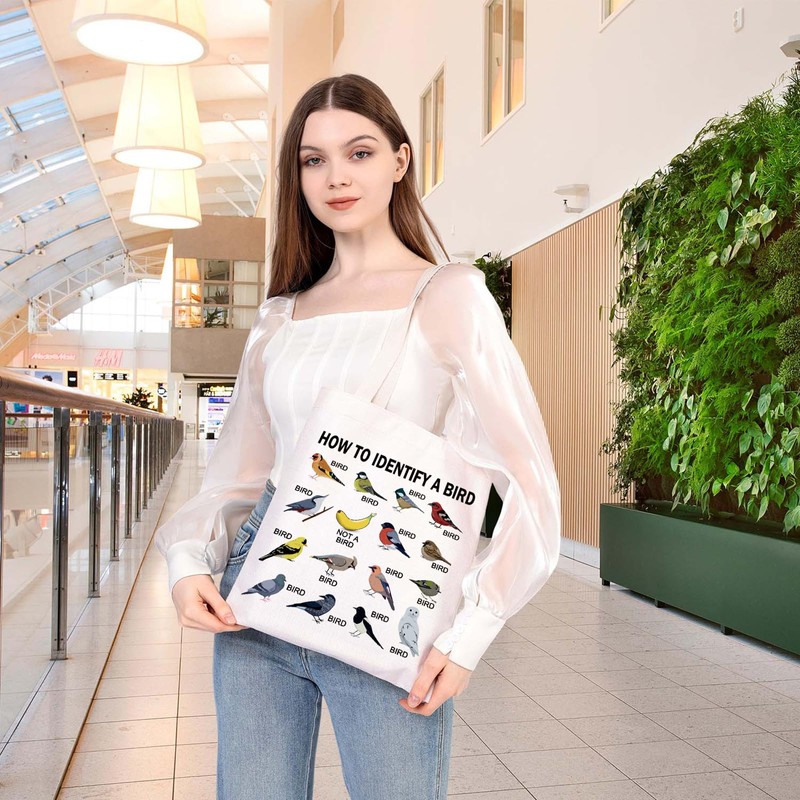 • Bag with bird Quote: HOW TO IDENTIFY A BIRD BIRD NOT A BIRD. This unique Tote bag is the perfect gift for Bird Lover and Nature lovers.