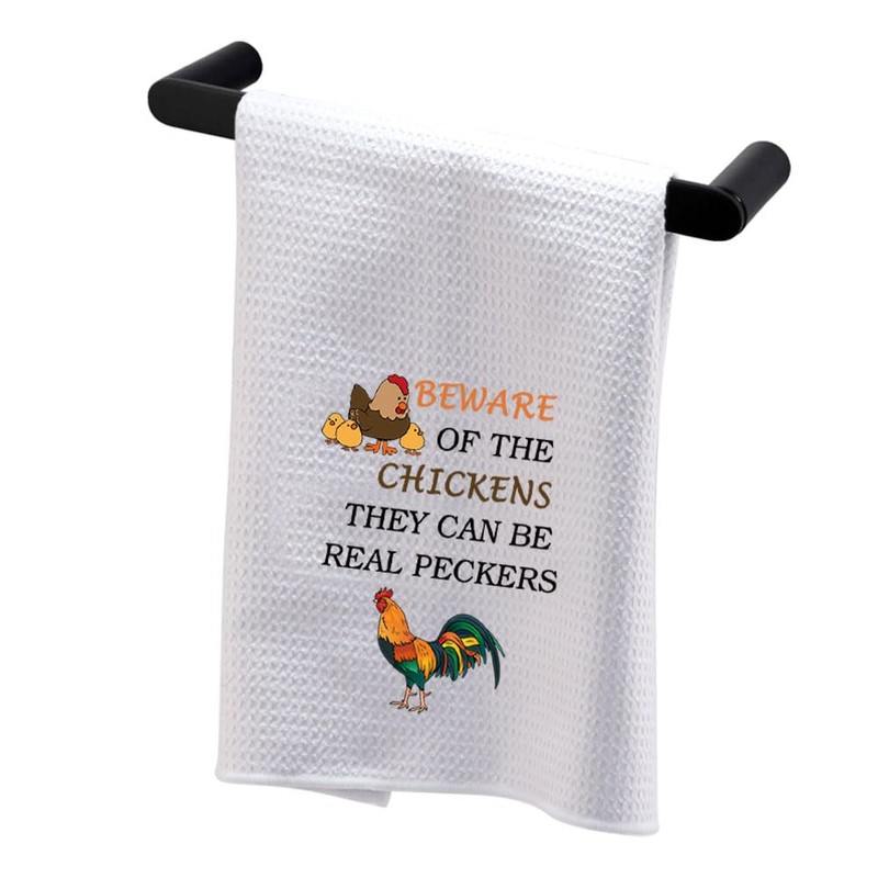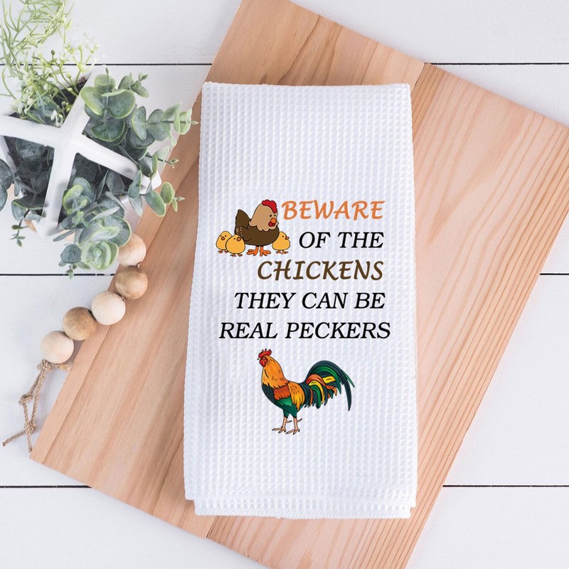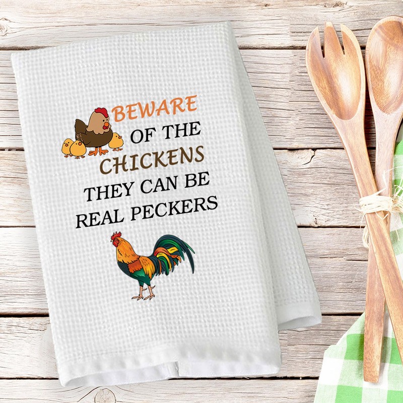 - Towel with Chicken Quote: BEWARE OF THE CHICKENS THEY CAN BE REAL PECKERS. This would be a great gift for Chicken lovers, Chicken Mom, Chicken Owner, hen lovers. Perfect as a birthday present, Christmas present, or just to show you care!