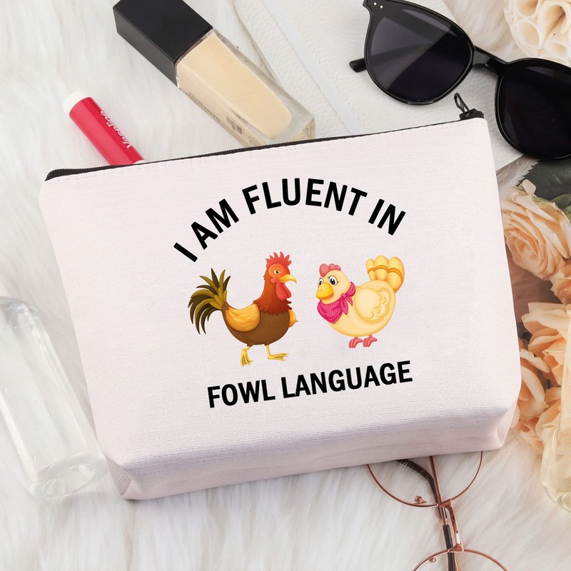 PLITI Chicken Makeup Bag I Am Fluent in Fowl Language Chicken Lover Gift Chicken Whisperer Gift Crazy Chicken Lady Gift (Chicken Fowl LanguageU)