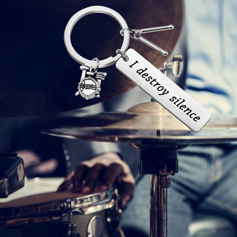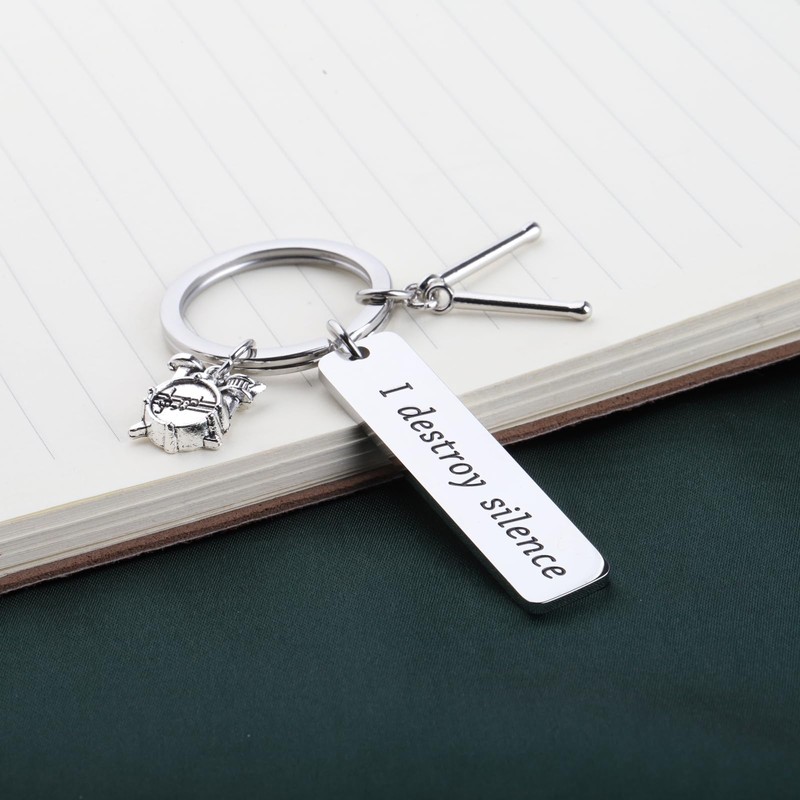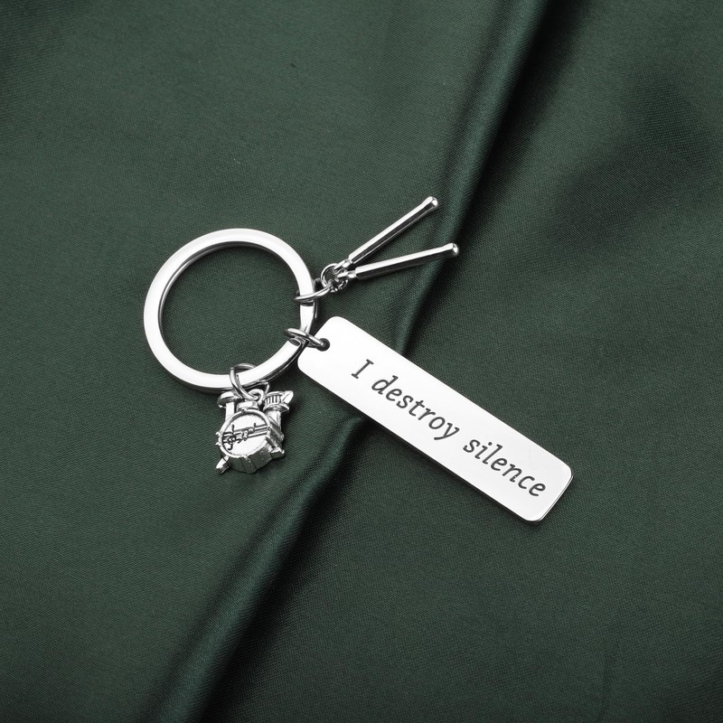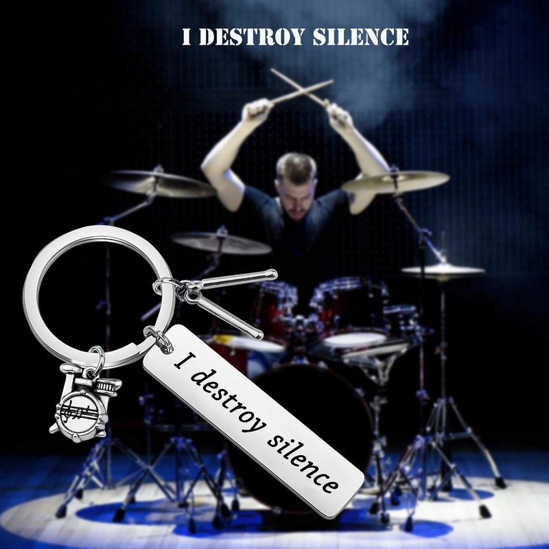 - ★Drummer Gift - This keychain is engraved with “I Destroy Silence”. It is a perfect gift for drummer or anyone who likes drum.