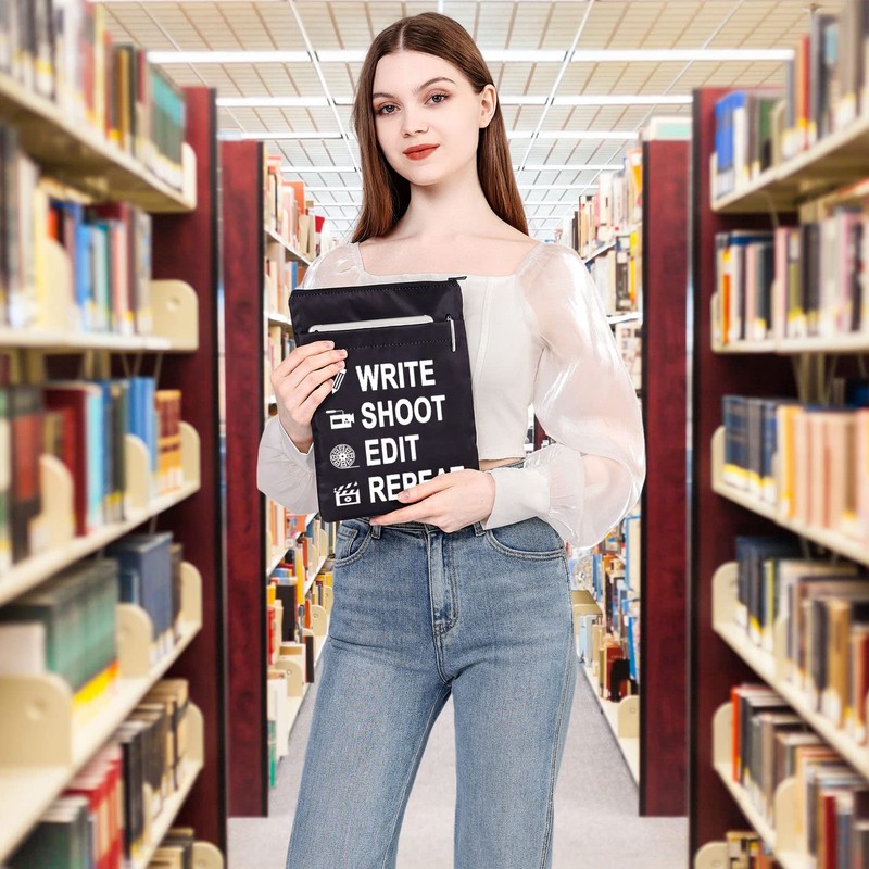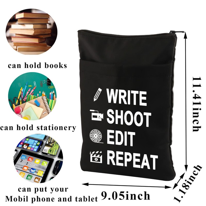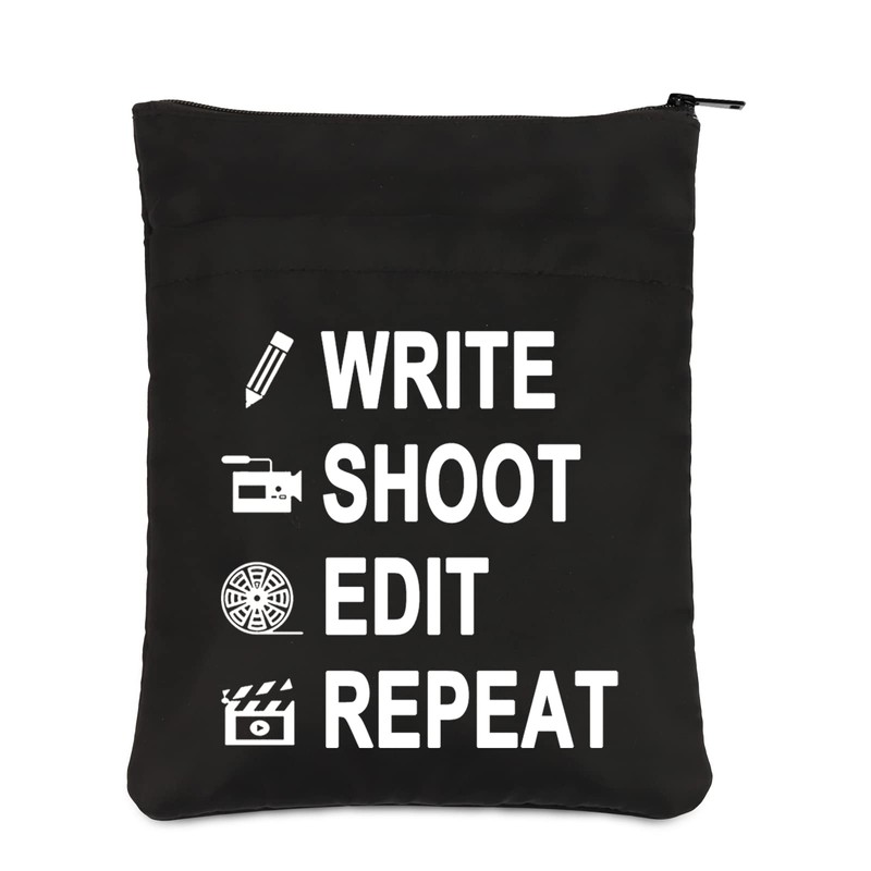 PLITI Filmmaker Gift Write Shoot Edit Repeat Filmmaking Book Sleeve for Film Director Film Camera Book Bag (Write Shoot Edit BSblU)