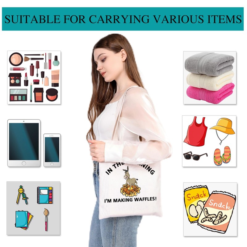 PLITI Funny Musical Inspired Tote Bag Monster And Donkey Fans Gift In The Morning I'm Making Waffles Lover Gift (morning waffles TGU)