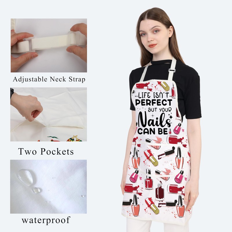 PLITI Funny Nail Tech Gifts Nail Technician Apron With Pockets Life Isn't Perfect But Your Nails Can Be Nail Artist Aprons (Perfect nails APU)