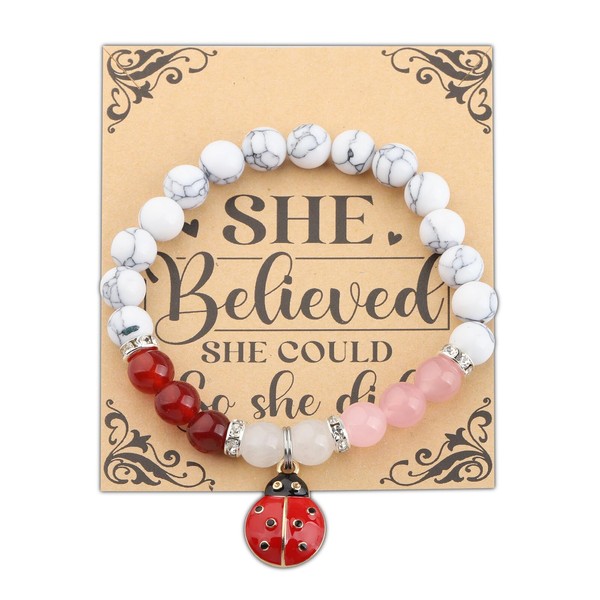 • ★Ladybug Gift - This bracelet with meaningful card engraved with “She believed she could... so she did”. The Ladybug is a symbol of good luck, love, happiness and protection. Hope this bracelet can bring you good luck.