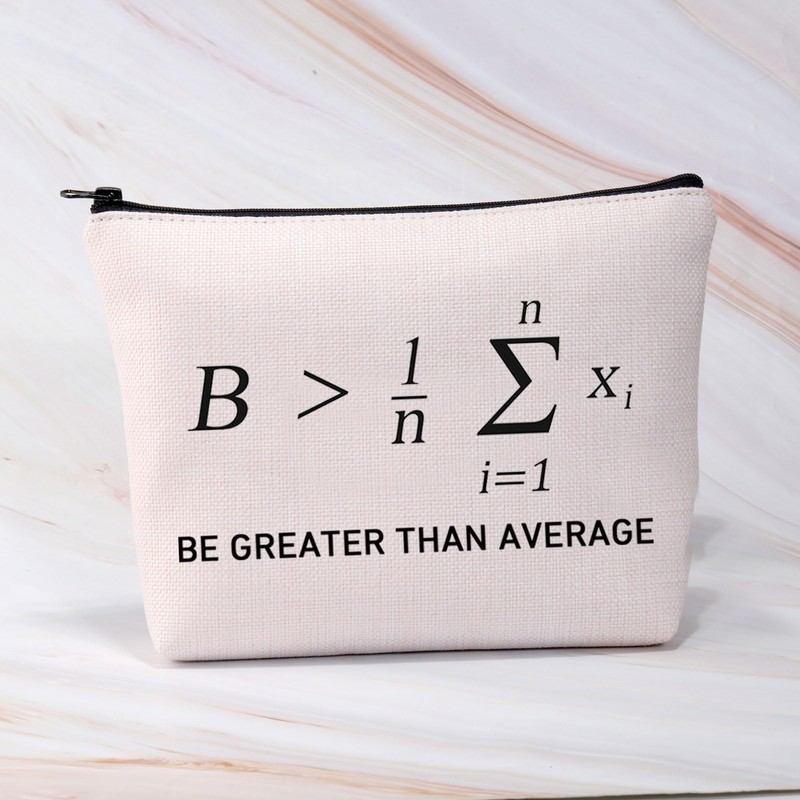 PLITI Math Makeup Bag Be Greater Than Average Math Lover Gift Mathematician Gift Math Teacher Appreciation Zipper Pouch (Greater Than AverageU)
