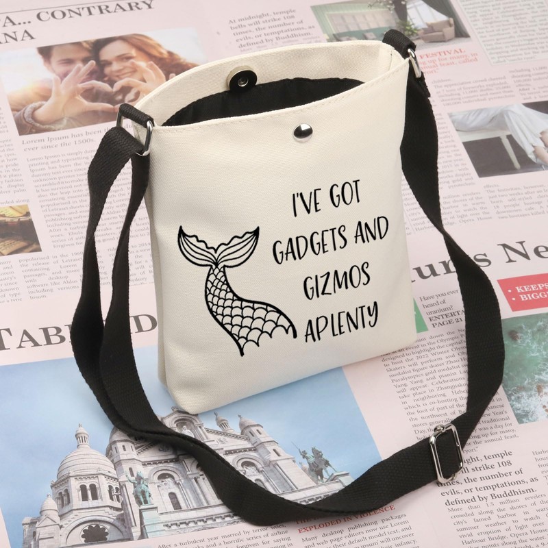 PLITI Mermaid Gift Beach Lover Gift I’ve Got Gadgets And Gizmos Aplenty Mermaid Lover Crossbody Bag Beach Themed Gift (Gizmos aplenty CbagU)