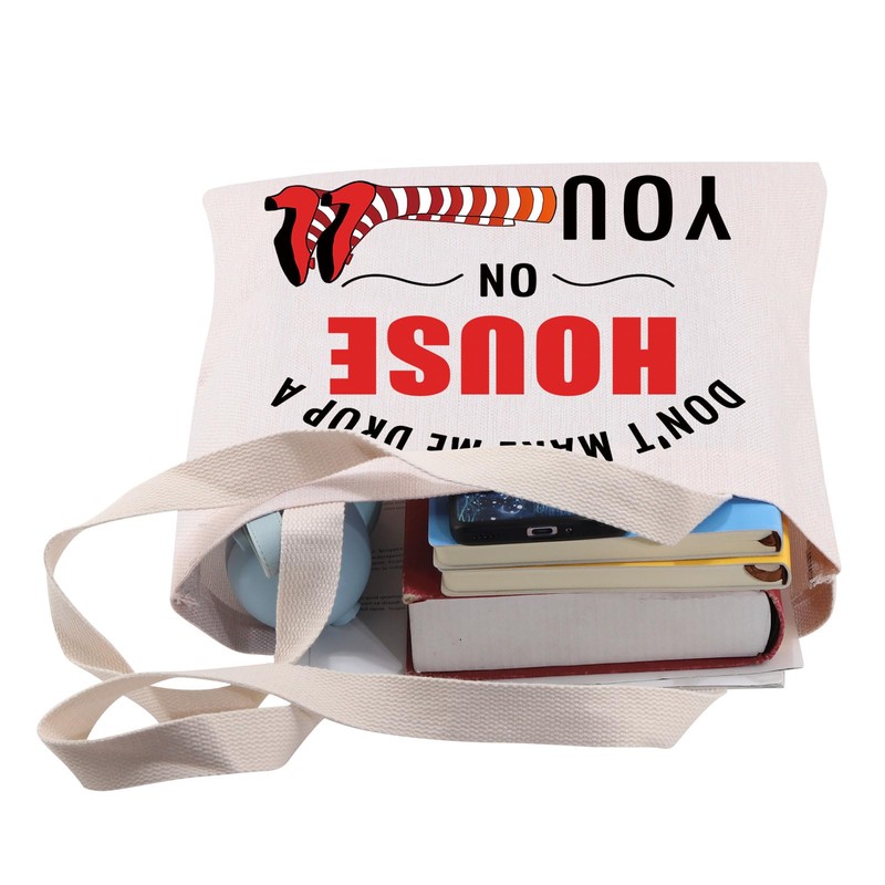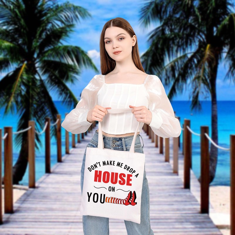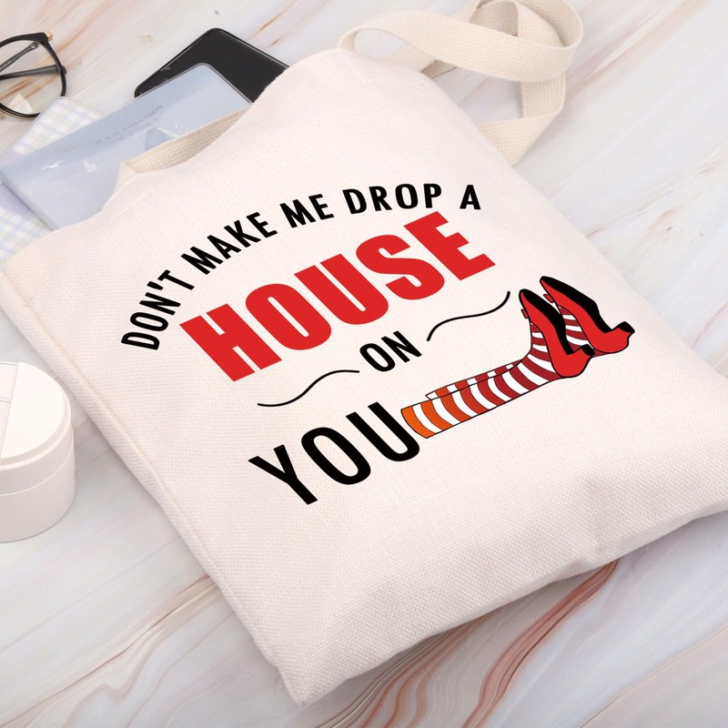 - ★Bag With Lettering: DON'T MAKE ME DROP A HOUSE ON YOU. This WOZ themed canvas shoulder bag makes a great birthday gift for Wizard oz fans and Dorothy Ruby lovers.