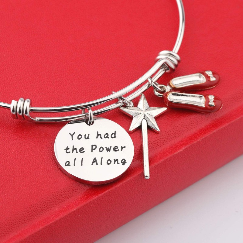 • Ruby Red Slippers Movie Jewelry - The bracelet has engraved with "You Had The Power All Along", great inspirational gifts for your daughter,frienc.