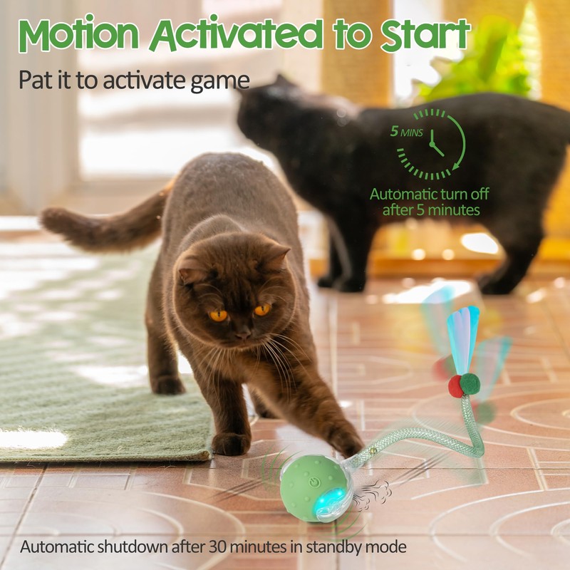 - Smart Motion Activated Cat Toy: The PLITTPETTS automatic cat toy operates for 5 mins and then enters standby mode which can re-activate with cat touch. This play-and-rest cycle will give your cat proper exercise, entertained, reduce boredom. Help conserve battery life.