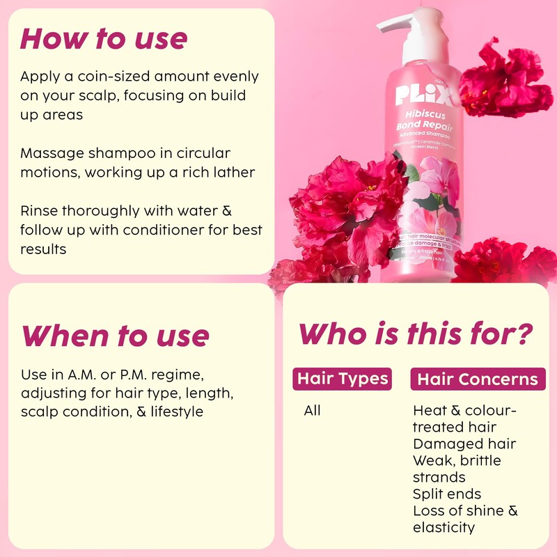 PLIX - THE PLANT FIX Hibiscus Bond Repair Advanced Shampoo for Damaged, Frizzy Hair - 200ml | Repair Hair Molecular Structure | FiberHance & Hibiscus Extract | Men & Women