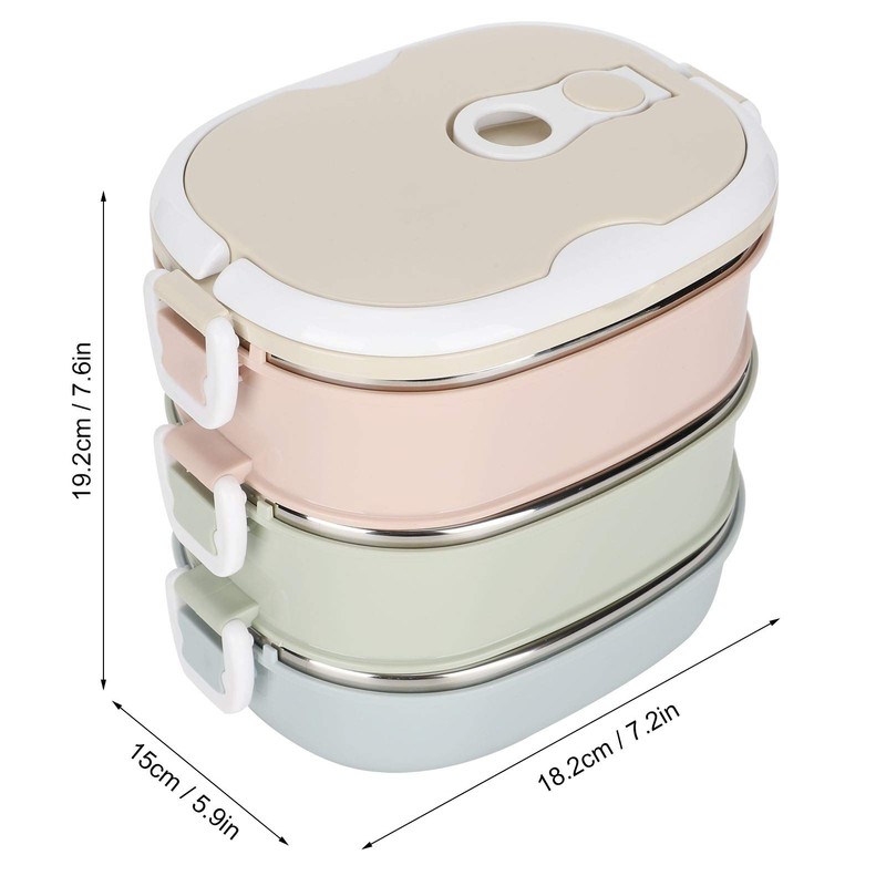 PLLO 3-Layer Stainless Steel Leakproof Lunch Box, Portable Hand Food Storage Container, Thermal Bento Box for Student Work, Picnic, Travel (#3)