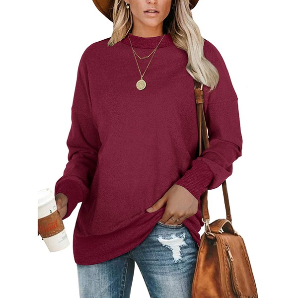 PLMOKEN Plus Size Sweatshirts for Women Casual Long Sleeve Round Neck Shirts tunic tops for Leggings M-4XL (L, Wine Red)