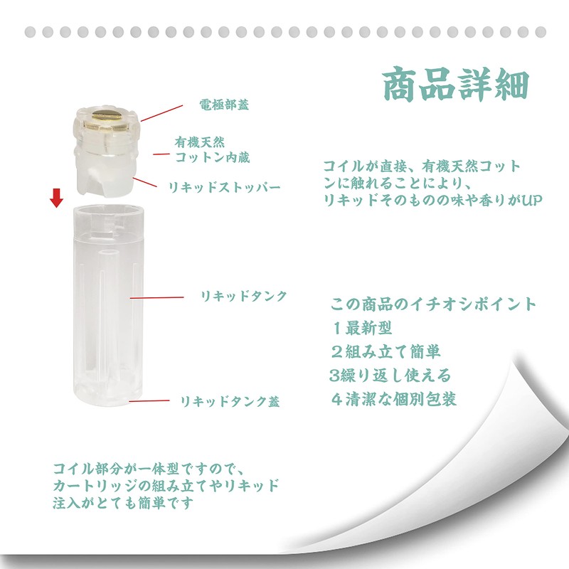 - (Improved Materials Compatible Atomizer) Made of PCTG resin with excellent heat resistance and high precision coil in the same size, with leak-proof function, PloomTECH + and PloomTECH Plus with genuine batteries. (Note: There may be individual differences in the number of suction cycles. Note: After injecting liquid, please repeatedly check the protective cap to make sure it is not tightened. This may cause leakage
