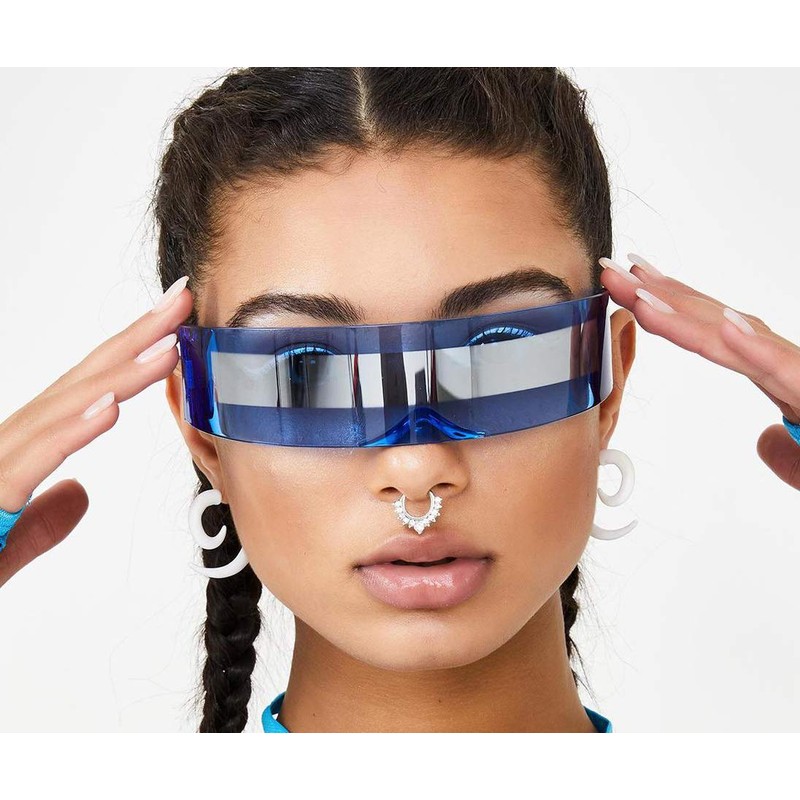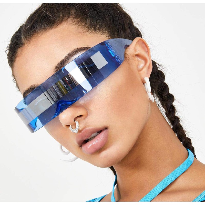 PLOPLO Futuristic Cyclops Monoblock Shield Mirrored Sunglasses (Blue, Silver)