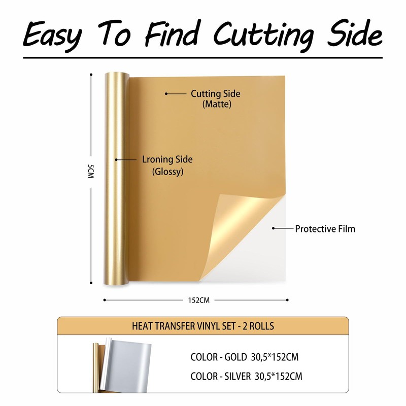 Plotter Film Textile - Set of 2 Rolls 30.5 x 152 cm Flex Film Plotter Textile, Iron-On Film for Textiles for DIY T-Shirt, Fabric (Gold/Silver)