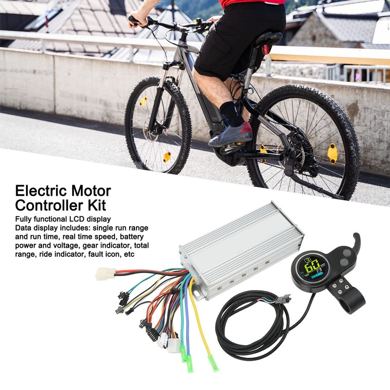 plplaaobo Electric Bike controller, Motor Controller Kit, 1000W 36V 48V Brushless Speed Motor Controller LCD Round Display with Thumb Throttle for Electric Bike Scooter