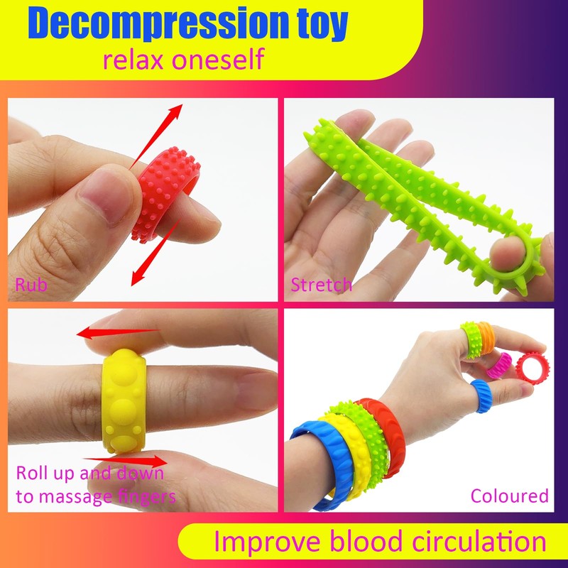 - 【Hochwertiges Material】: Unsere beruhigenden stress ring und Armbänder bestehen aus hochwertigem Silikonmaterial, das sich angenehm anfühlt und widerstandsfähig gegen Ziehen, Drehen und Quetschen ist. Sie sind langlebig und reißfest und sorgen für lang anhaltendes Vergnügen, während sie Ihnen helfen, sich auf Ihre Aufgaben zu konzentrieren.