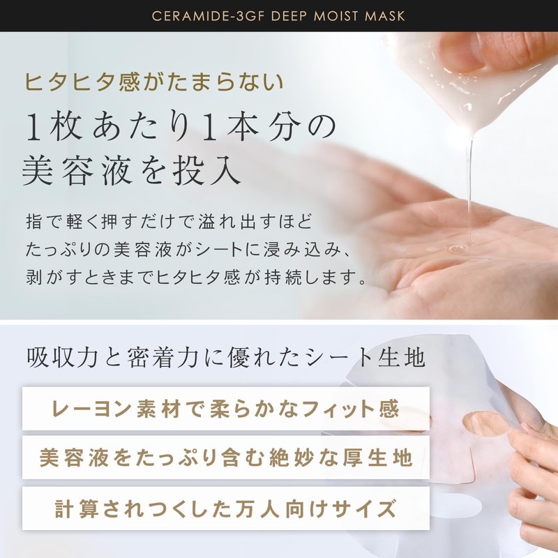 • (Liquid volume: 13.5 fl oz (400 ml)) 1 piece of beauty serum! 12 luxurious types of high-quality beauty ingredients are infused in one piece. One serum is included per piece, so you can use the mask for full body care. Aging Care; EGF, FGF, IGF, Retinol Moisturizing Barrier: 5 types of humanized ceramide, Panthenol Transparency: Niacinamide, Vitamin C derivatives