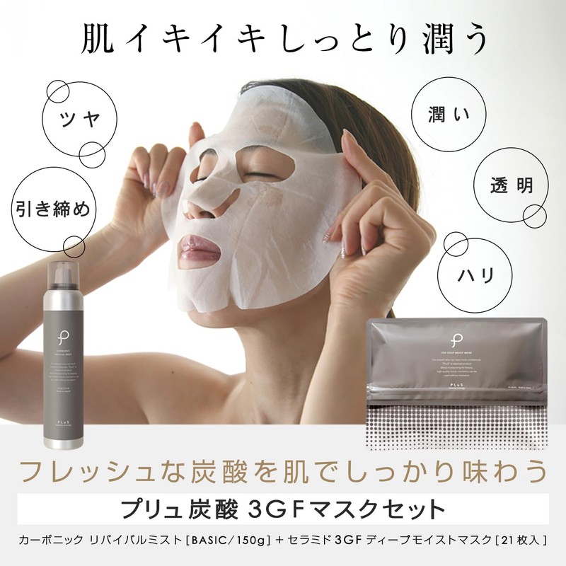 PLU Carbonated Mist 3GF Mask Set [Carbonic Mist (5.3 oz (150 g) + 3GF Mask (21 pieces)]