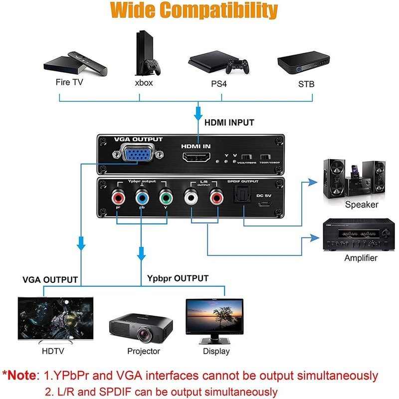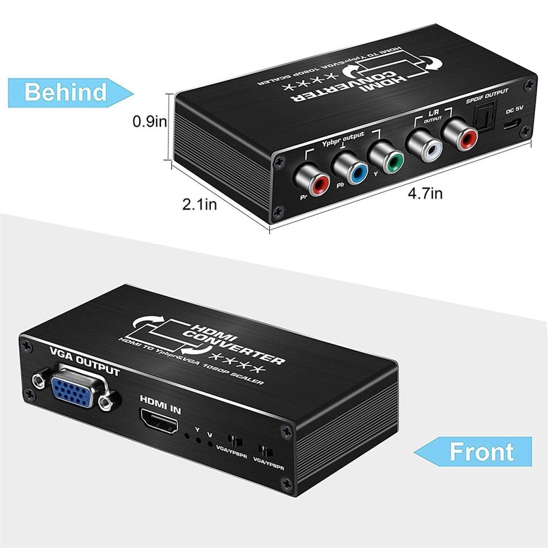 • Compatible with most HDMI connective devices: HDMI (input) to YPbPr (output) 1080p scaler, Switch / Laptop / PS4 / PS3 / Roku / Blu Ray DVD / HD Projector / Xbox 360 / DVB Receiver / Game Consoles etc. It also supports signal from a DVI-HDMI cable or adapter (not included)