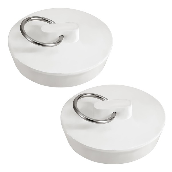 Plug for Sink, Pack of 2 Drain Plugs, Bathtub Plugs with Hanging Ring Plug, Washbasin, White Sink Plug, Durable Sink Plug, Rubber Sink Plug for Bathtub, Kitchen, Bathroom
