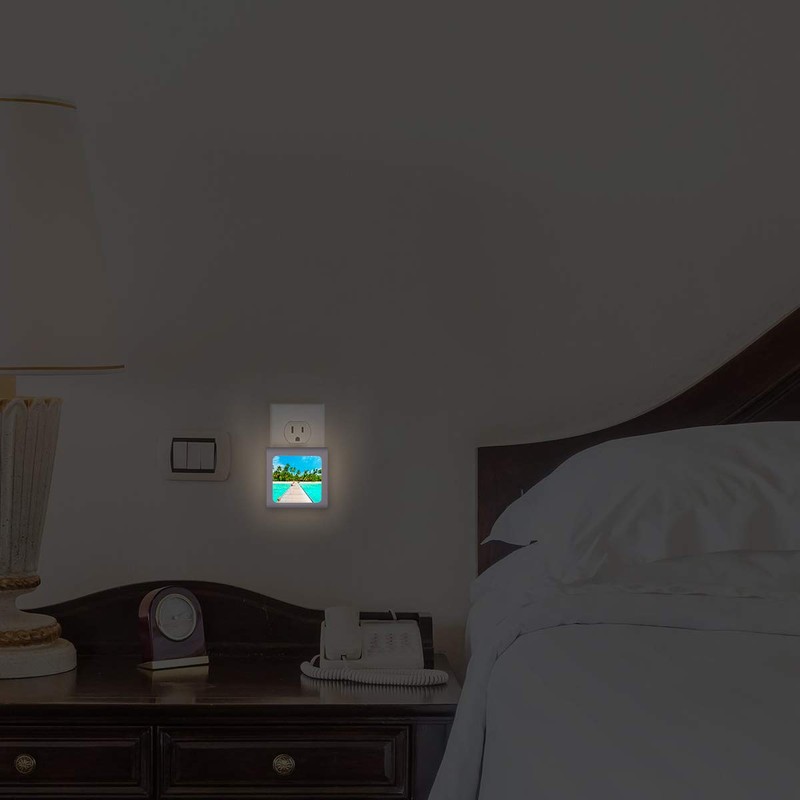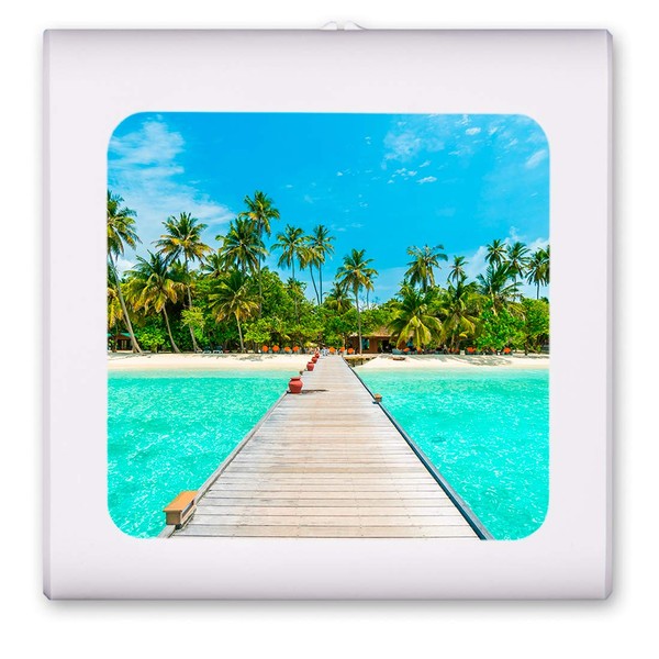 • ADJUSTABLE BRIGHTNESS - Our LED night light features a stepless adjustment slider to adjust the brightness from 0 LM to 15 LM. You’re able to set your desired brightness for different occasions to provide the best lighting experience. Beautifully printed Pier to the Tropical Beach image.