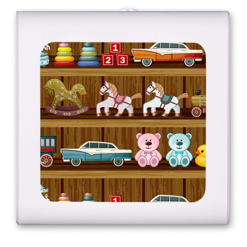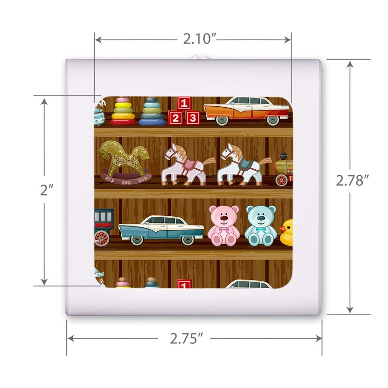 - ADJUSTABLE BRIGHTNESS - Our LED night light features a stepless adjustment slider to adjust the brightness from 0 LM to 15 LM. You’re able to set your desired brightness for different occasions to provide the best lighting experience. Beautifully printed Toy Box image.