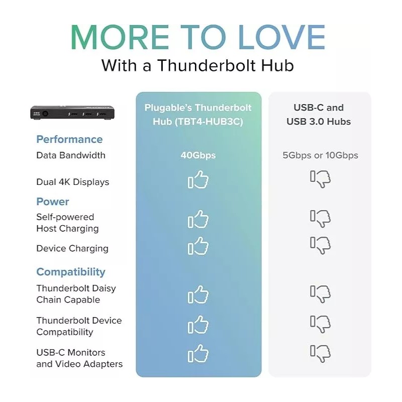 - Certified Reliability: The Plugable Thunderbolt 4 and USB4 Hub with 60W charging is Thunderbolt certified and built on the Intel Goshen Ridge Chipset for maximum performance and compatibility with your USB-C, USB4, and Thunderbolt devices