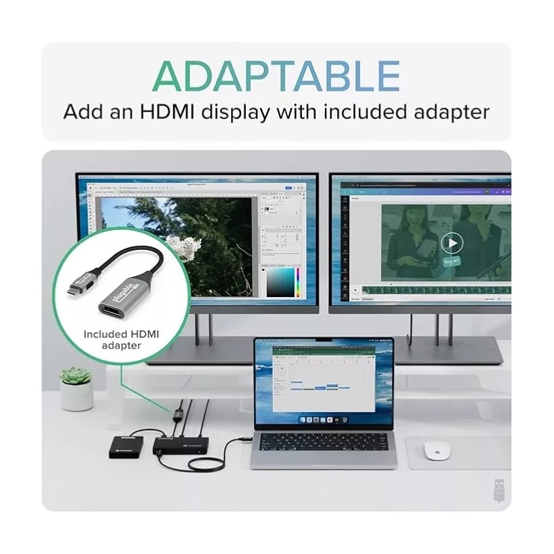 Plugable Thunderbolt 4 & USB4 Hub Single 8K/Dual 4K Displays, 60W Host Charging