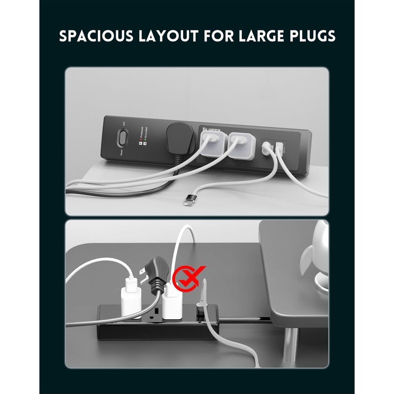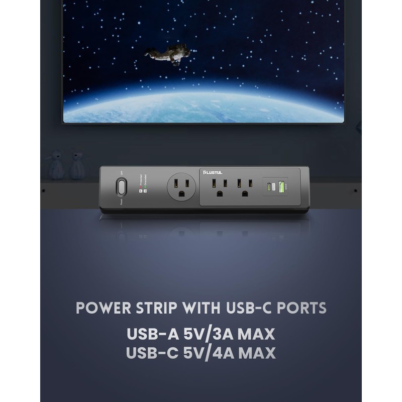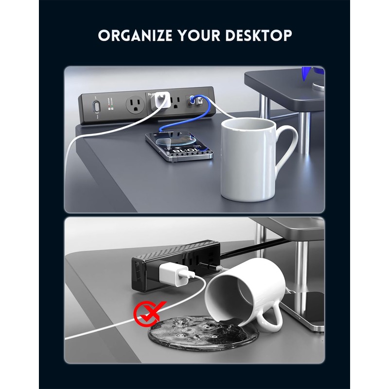- 🌏【Desk Power Strip with USB Ports】 Equipped with 3 AC outlets, 1 USB-C port, and 1 USB-A ports, Offers a space-saving solution by securely attaching to the edge of your desk, providing easy access to multiple outlets without taking up valuable surface space, Ideal for offices, home workstations, or gaming setups.