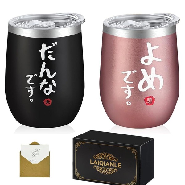 PluieSoleil 結婚祝い 結婚記念日 プレゼント タンブラー ペア 真空断熱 ステンレス 父の日 母の日 誕生日 プレゼント380ml (304) ステンレススチール製 結婚 お祝い ギフト タンブラー 名入れ 夫婦 夫 妻 両親 父親 お父さん 保温 保冷 (だんなです よめです)