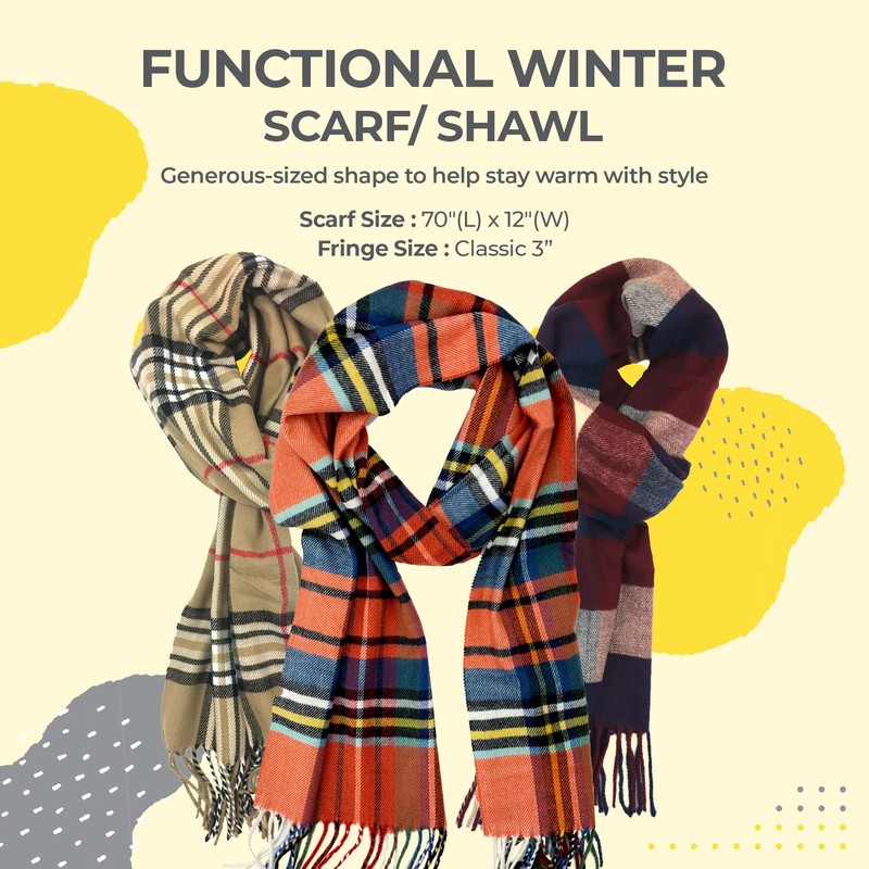 - Super Soft Material comprises 100% Acrylic Super with a Soft Cashmere feel. In addition, the plaid print with tassel fringe will add style to your outfit.