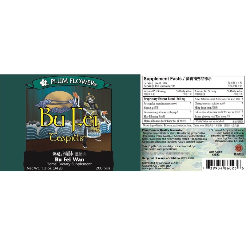 - Mayway Plum Flower Bu Fei comes with 200 teapills per bottle