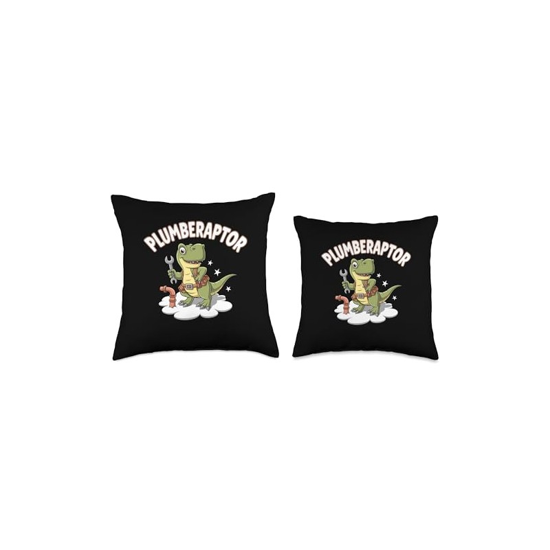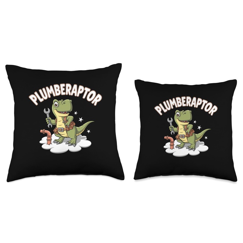 Plumber Dinosaur T-Rex Pipe Wrench Dino Funny Plumbing Throw Pillow