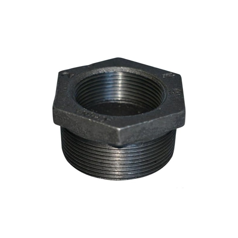 PlumberStop - 2-1/2 X 1-1/2 BLACK HEX BUSHING, Black Iron Malleable Pipe Fittings, Steel For Heating Industrial Residential Commerical Plumbing