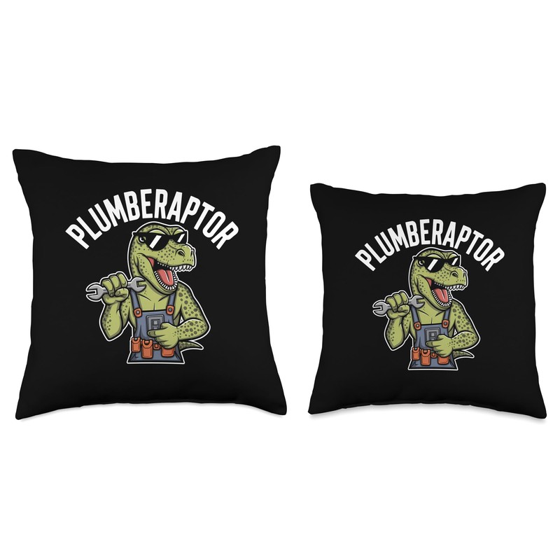 Plumbing Dinosaur T-Rex Pipe Wrench Dino Funny Plumber Throw Pillow