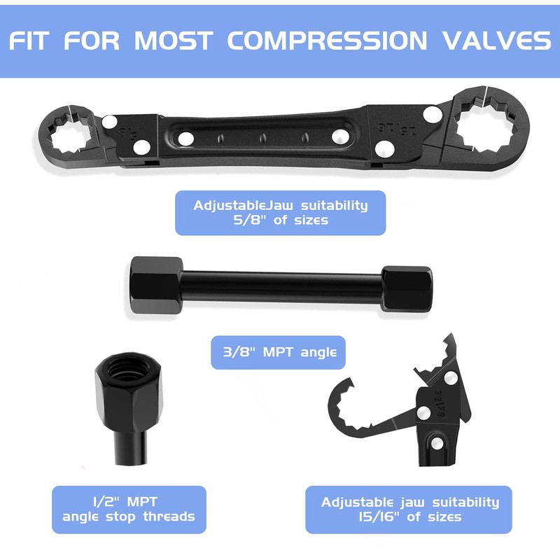 - VERSATILE WRENCH: Specialized angle stop wrench features a durable design for removing and installing compression angle stops and rings effectively