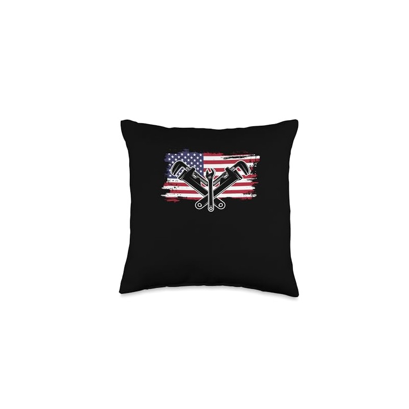 Plumbing Wrench American Flag Pipe Wrenches Pipefitter Throw Pillow
