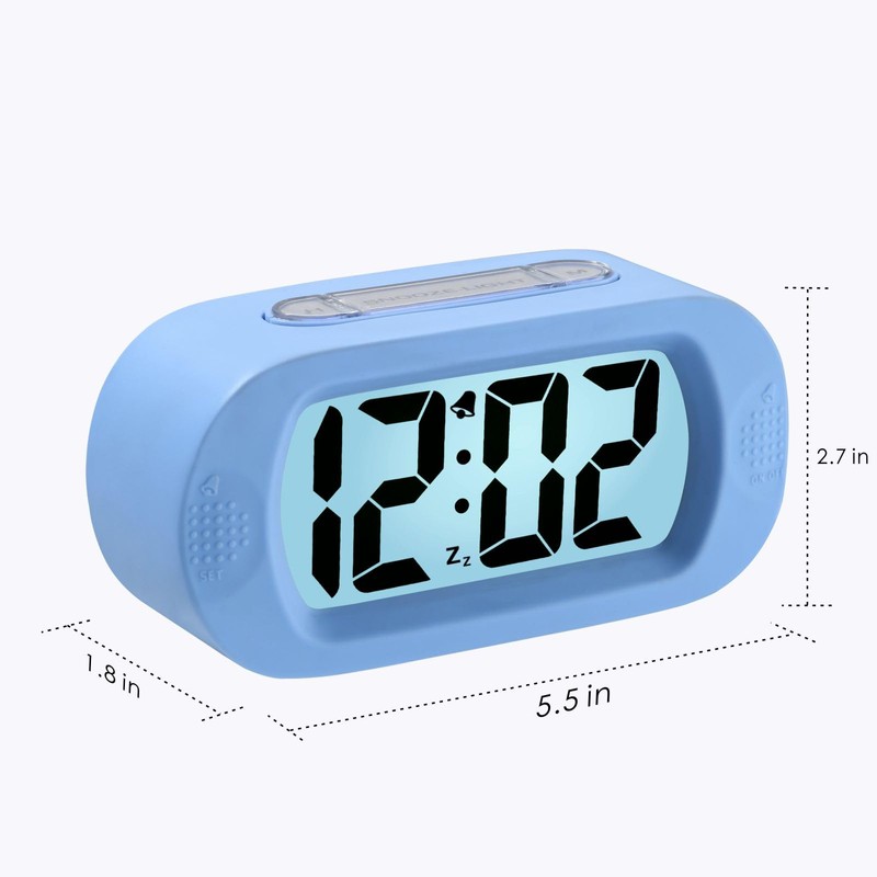 Plumeet Easy to Adjust, Large Digital LCD Travel Alarm Clock, with Snooze Mode and Night Light, Rising Sound Alarm & Handheld Size, Children (Light Blue)
