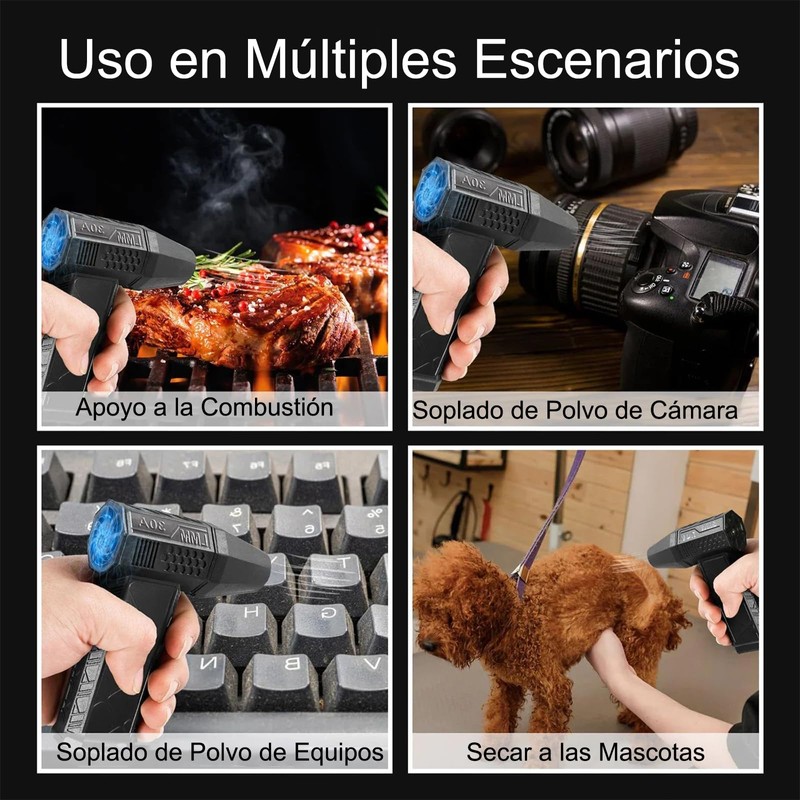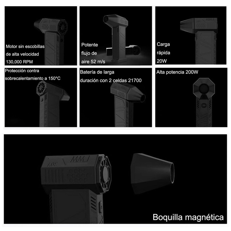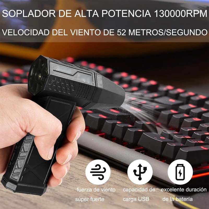 - 🔹 Aire Comprimido Para Limpieza Potente y Eficiente - Con una velocidad de hasta 130,000 RPM, este soplador de aire comprimido ofrece una limpieza profunda y rápida, eliminando eficazmente el polvo y la suciedad de teclados, computadoras, cámaras y otros dispositivos electrónicos. Ideal para el hogar, oficina y automóvil.