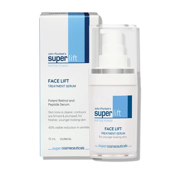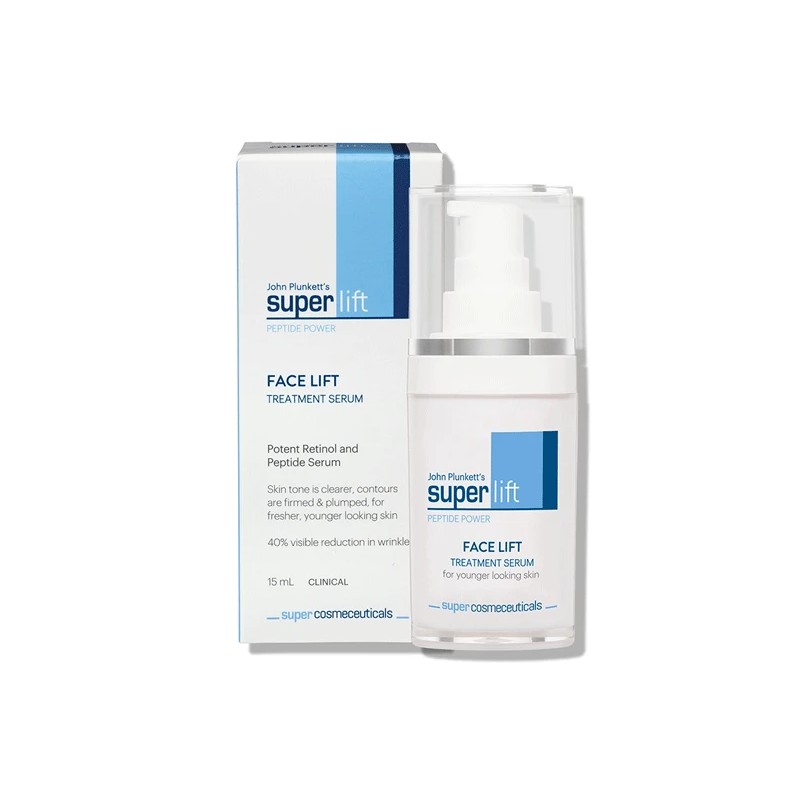 John Plunkett's SuperLift Face Lift Serum is a powerful anti-ageing night-time serum containing a combination of retinol, peptide and hyaluronic acid. Face Lift Serum delivers a 20% improvement in skin density and almost 60% reduction in wrinkles after only 4 weeks.